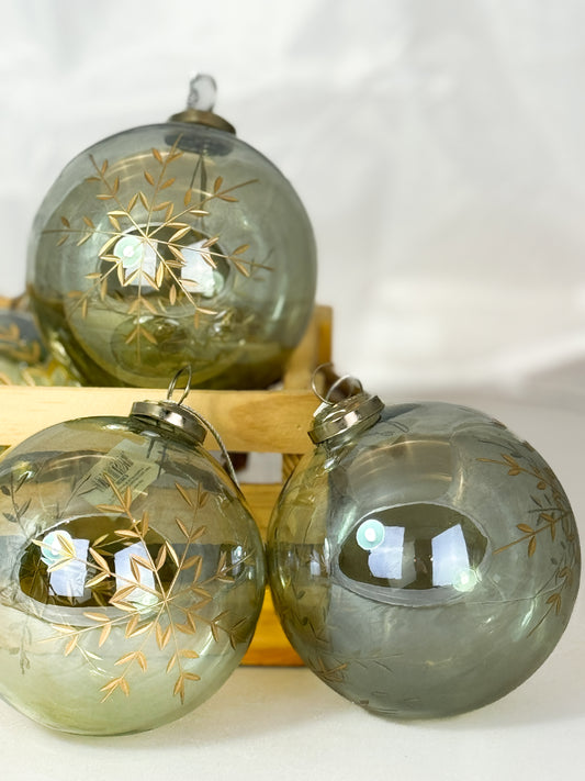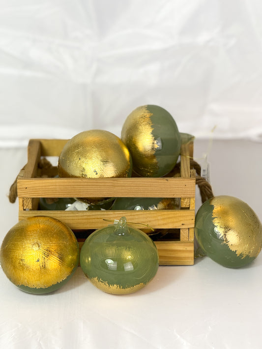 GLASS BALL ONION SHAPE GREEN WITH GOLD LEAF 10CM
