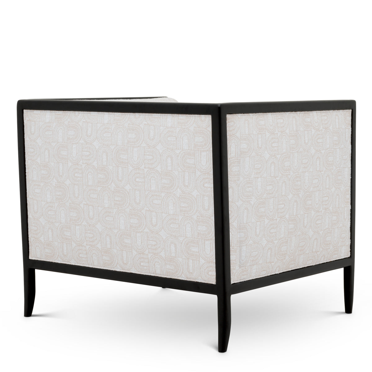 This elegant chair combines refined design with versatile comfort, upholstered in two different fabrics with a contrasting interior and exterior. Its sleek frame is crafted from wood and finished in black, offering endless styling options.W. 78 | D. 70 | H. 67 | SD. 55 | SW. 56 | SH. 43 | AH. 67 cm